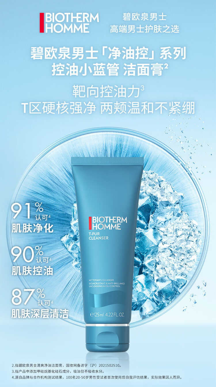 碧欧泉(BIOTHERM)男士净肤细致洗面奶125ml(清爽控油 护肤品 清洁毛孔 男生礼物)