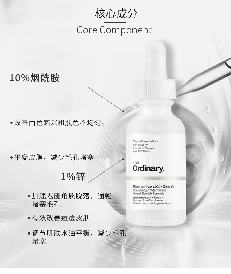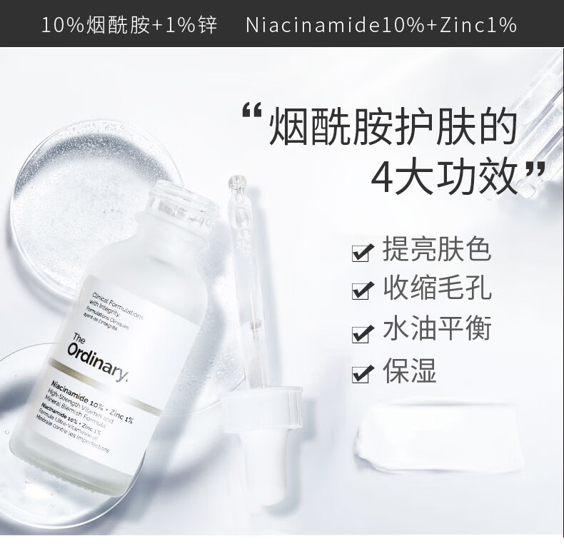 THE ORDINARY10%烟酰胺原液精华美肤小白瓶提亮肤色面部精华30ml 纯净护肤